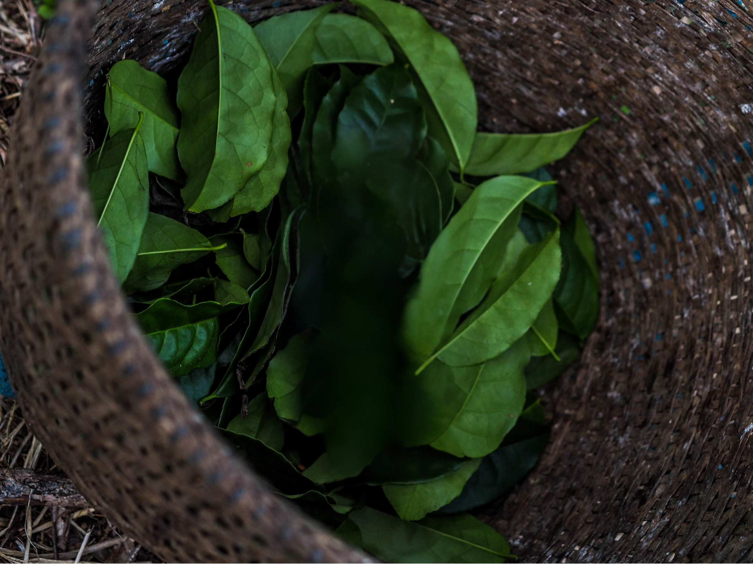 Manos curtidas de nuestros recolectores se deslizan entre las hojas, buscando solo las mejores.
